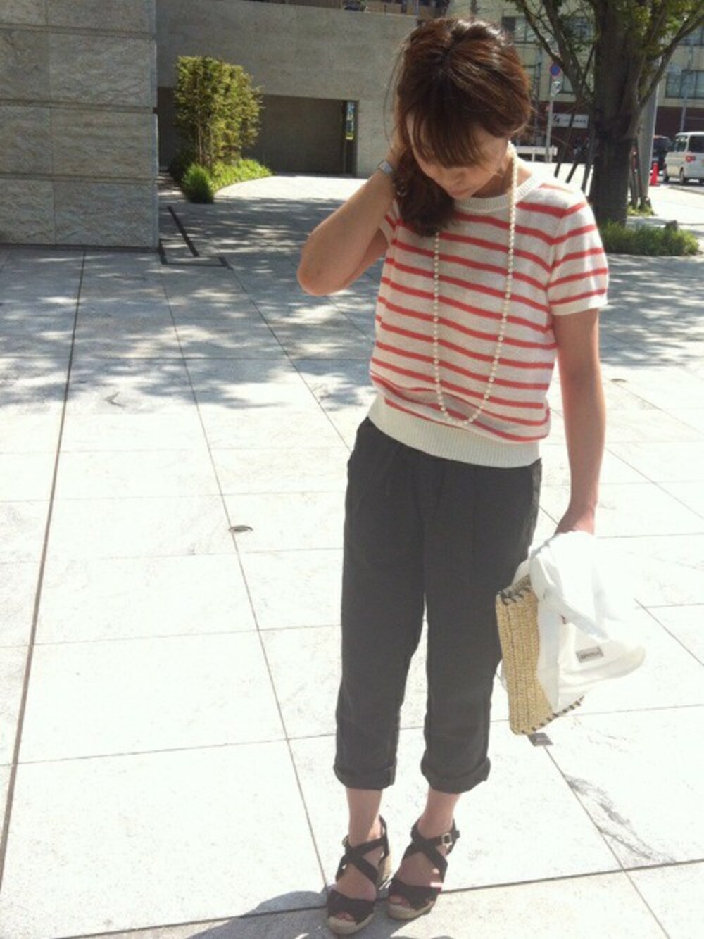 一週間ぶりでございまーす(((o(*゚▽゚*)o))) 皆様夏。楽しんでいらっしゃいますか? ほろ酔いシリーズの冷やしパイン味にハマる今日この頃( ̄▽ ̄) 今週のコーデは、ゆるっと&ちょっとだけ女らしく‼︎です(笑) 綿100%のサマーニットは肌触りバツグン。 パンツは綿麻混合で、とにかく涼しい‼︎動きやすい‼︎ぜひご来店頂いて履いて頂きたいですねー。 今日のテーマは、ちょっとだけ女らしさを出したかったので、ヒールのあるサンダル履いてみました。 まだまだまだまだ暑いので皆様お体にはお気をつけ下さいませー*\(^o^)/*