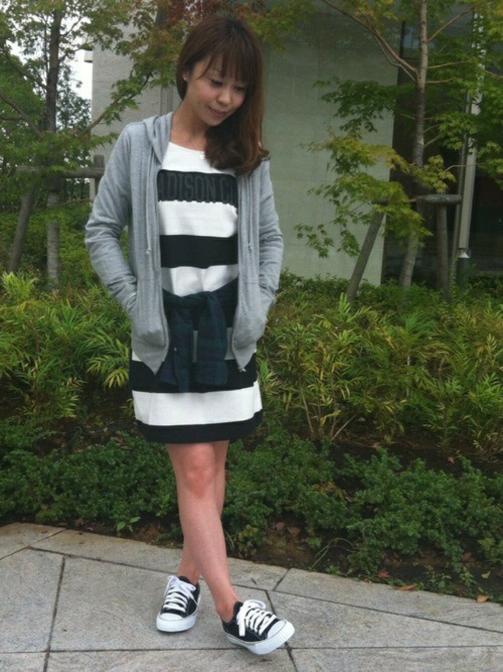 皆様こんにちは♪( ´▽`) 先週は急に気温が下がって、もぅ秋⁈とビックリしましたねー。 そんな秋の風を感じながら先週は人生初の屋形船でワイワイしてきました(((o(*゚▽゚*)o))) まだ猛暑もありそーなので、体調に気をつけて下さいませね。 さてさて…今週は今期人気の太ボーダーワンピ。 お袖は七分袖になっていて、とにかく形が可愛いんです。 黒ストッキングにパンプスもいいなぁと思いつつ。先週のチェックシャツを腰巻きして、カジュアルスタイルにしてみました。 個人的にグリーンのチェックシャツ秋はヘビロテしちゃうつもりです‼︎ きっとまた登場しますよー(笑)