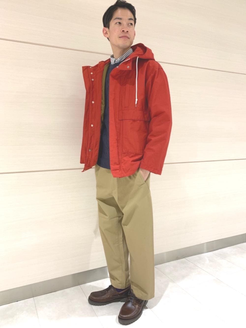 ニットにシャツ、チノパンというトラディショナルな合わせにフィールドパーカーをミックス。 アウトドア×トラディショナルはどこか古臭い印象があるかもしれませんが、3wayで機能的であったり、イージーパンツな作りのチノパンなど堅苦しくなく、「どこか懐かしいけど新しい」を体感してみてください。