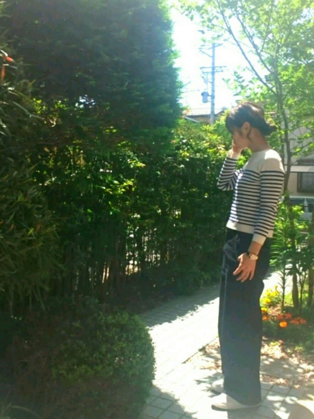 見て頂きありがとうございます‼ 青ボーダー ワイドパンツ シンプルコーデです♪