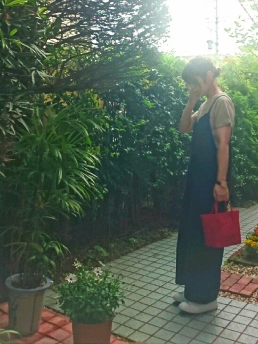 久しぶりの投稿です! 今日は曇り空でコーデ見にくいですが…💦 ベージュTシャツにオールインワンで ゆるコーデです♪