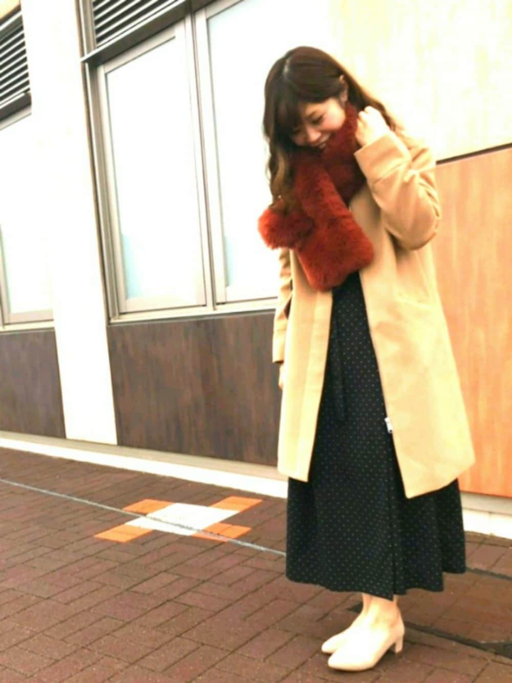 今日は名古屋にいってきました!! 黒のドットワンピともこもこのマフラーで大人コーデです