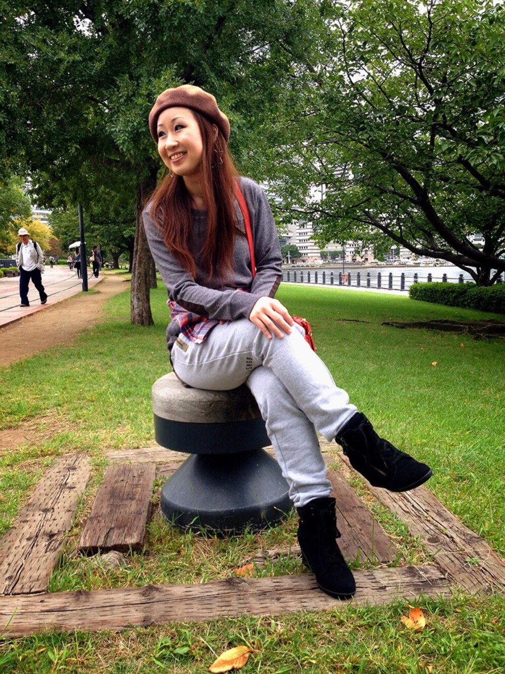 動き易いスタイルにも、ベレー帽は活躍しますね!