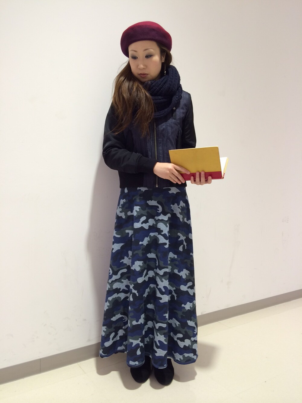 ショート丈トップスには、首まわりにボリュームを出して、ロングスカートとコーディネートが、ベストバランスです!