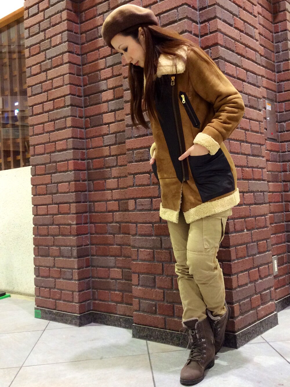 YOKOHAMAスタッフのブルゾン「avirex/アヴィレックス/レディース/BIG COLLAR MOUTON SHORT JACKET/ビッグカラー ムートンショートジャケット」を使ったコーディネート