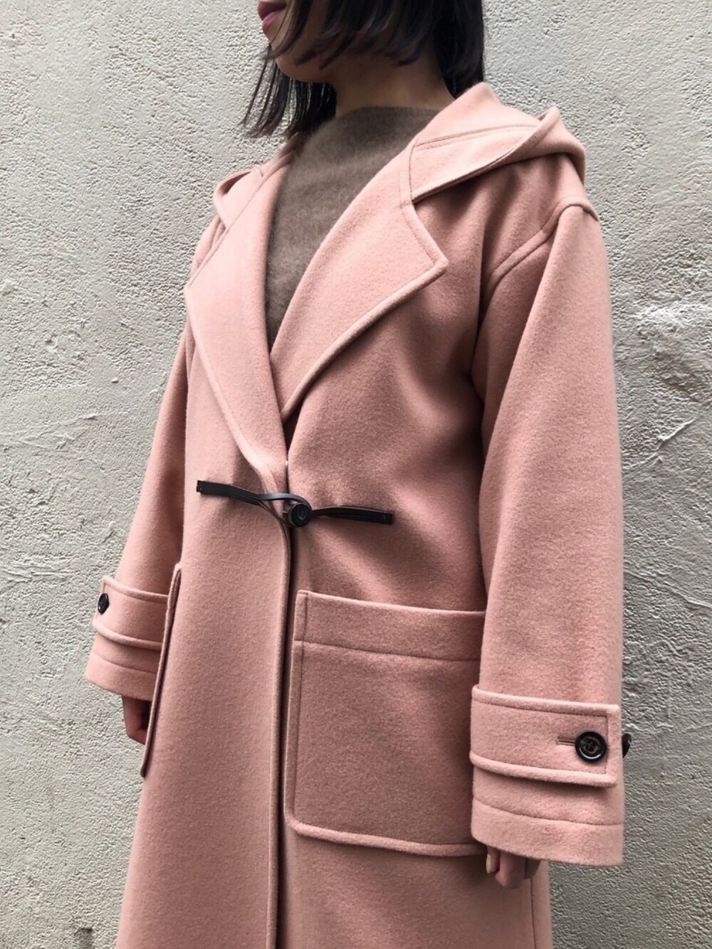 munichの寺井です! 人気のダッフルコートの新色、ピンクです🌸 こちらはZOZO限定カラーです✨ 大人も似合うピンク!! 気持ちも明るくなります〜☺