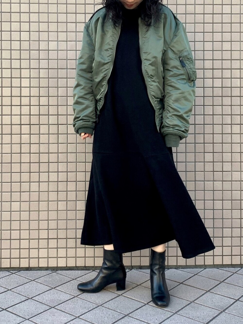 terai(Munich)のワンピース「ダブルフェイスニット ボートネックフレアワンピース」を使ったコーディネート