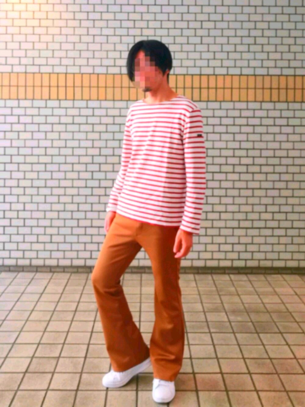 明日から太陽が恋しい天気になるみたいですね。今日のタグに乗っかってフレアパンツ使用の赤系コーデ。