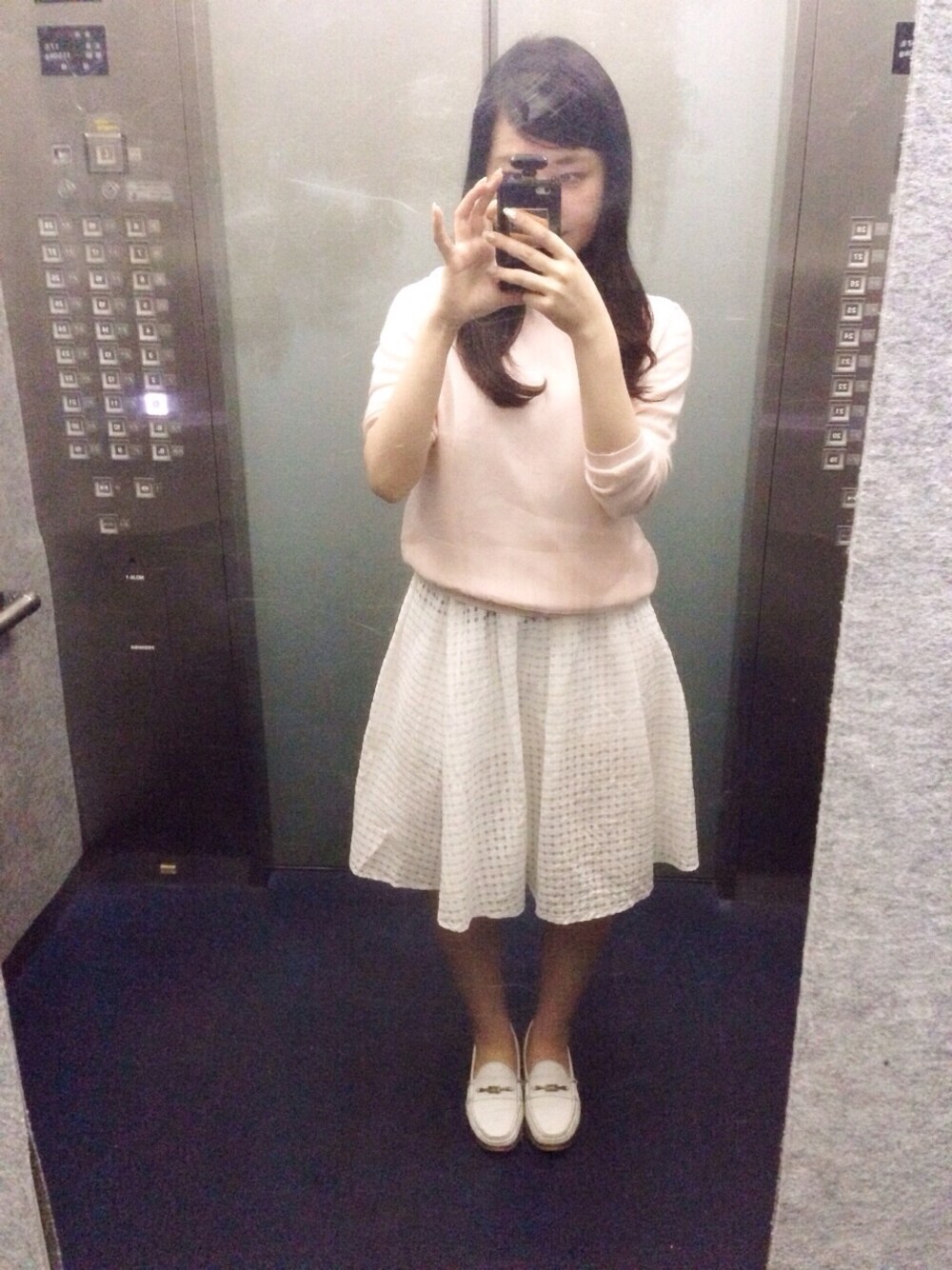 today's outfit♥︎ レディーめにしてみました! 雨で寒かったのでニット×膝丈スカートで冷えないように。