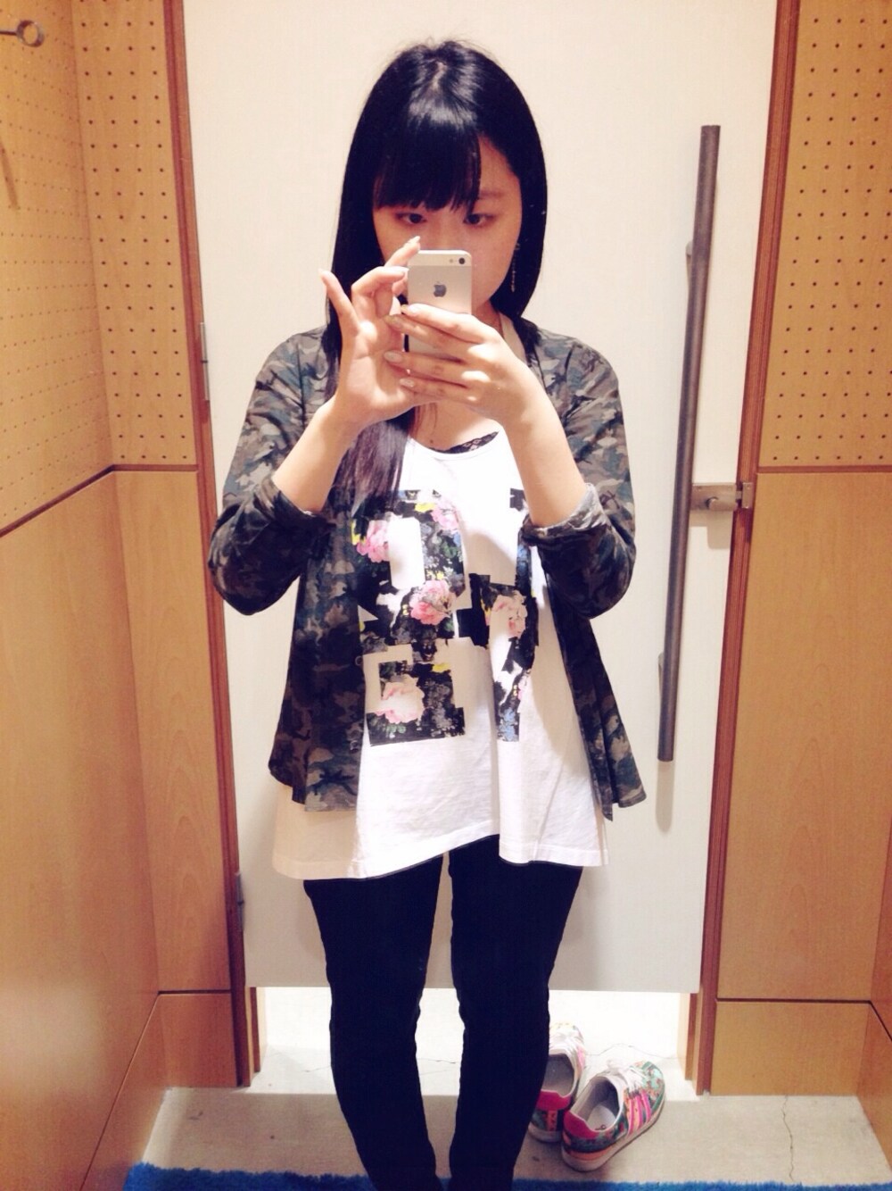 today's outfit☻ MSGMのフラワーロゴプリントのトップスが お初。 ピアスはbrooklyn charmで手作りしました☻ こだわって作ったのでお気に入り。