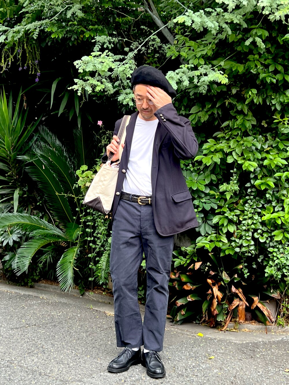 ワントーンのジャケットスタイルも、ワークブランドやアウトドアブランドでまとめると、程よくゆるくなります。