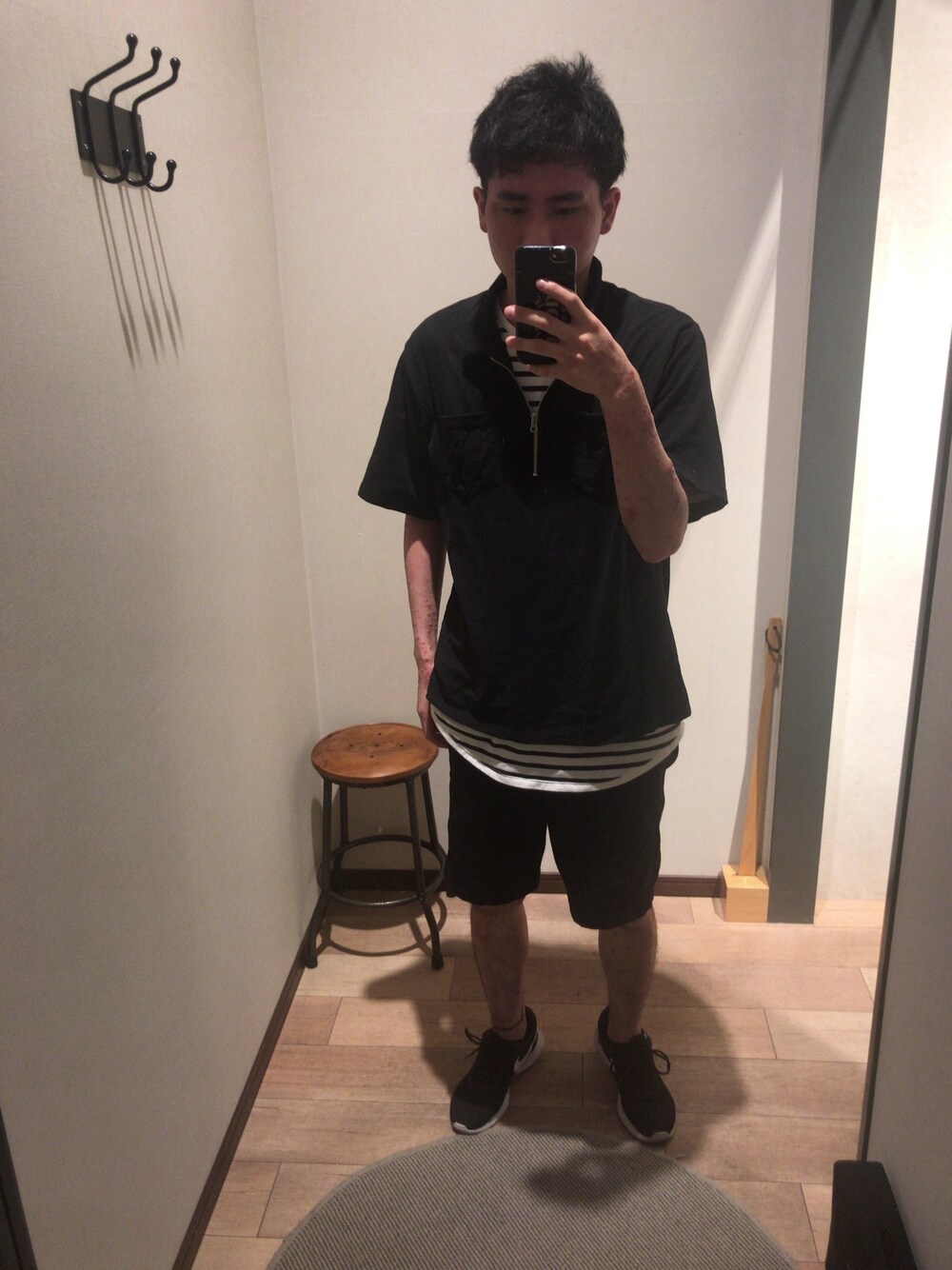 いつもいいね、お気に入り ありがとうございます( -`ω-)✧ 久しぶりの 投稿になってしまった( ˙-˙ ) ハーフジップのポロシャツから ボーダーをチラリ(。-∀-。) 着用サイズ tops XL inner L pants S shoes 26cm