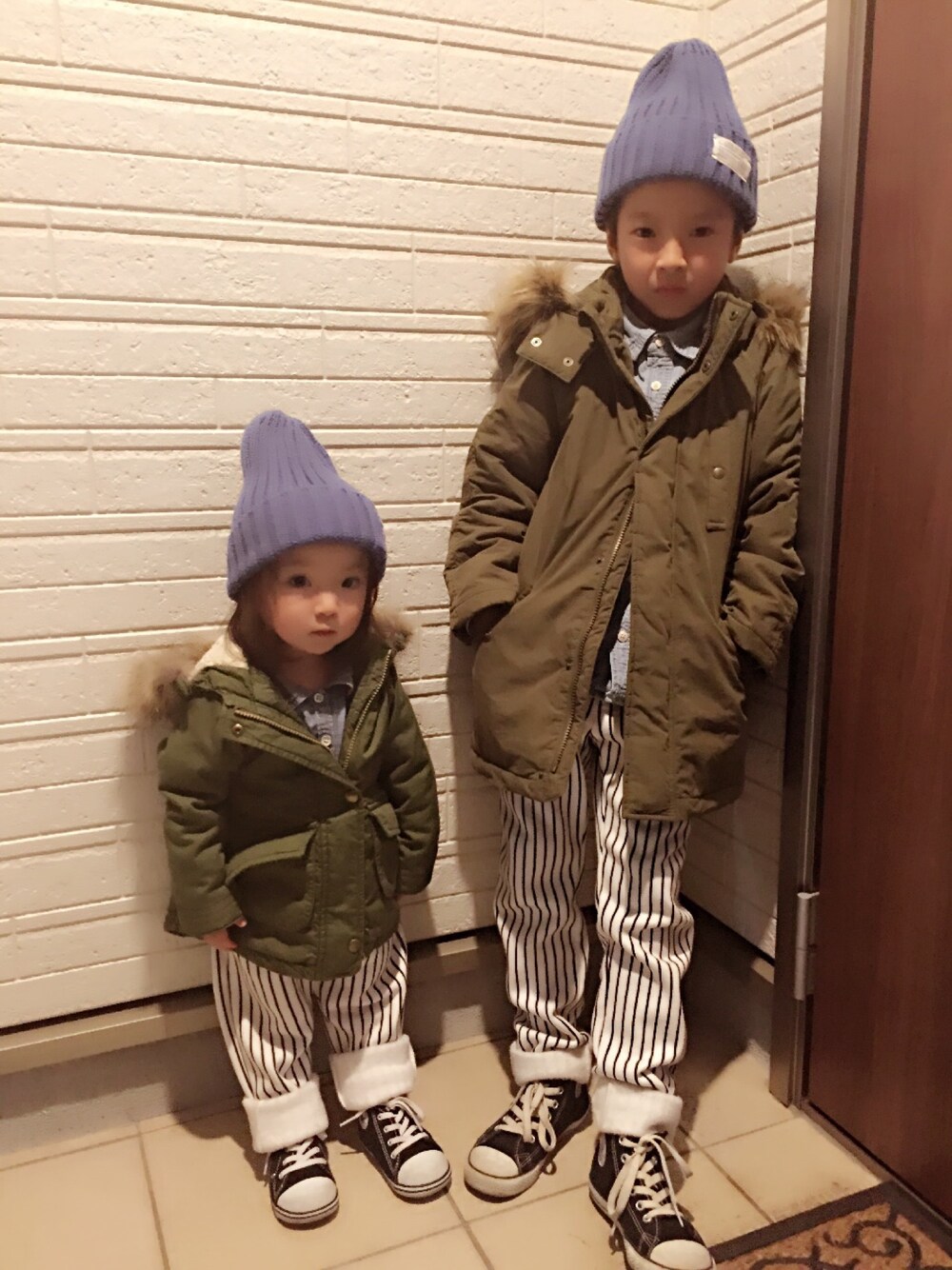 こんにちわ♪ 何日か振りにWEARを開きました!汗 先日、忘年会に行く前のショットなので暗いですw 今日はホワイトのストライプのパンツがお揃いで久々の兄妹コラボですw