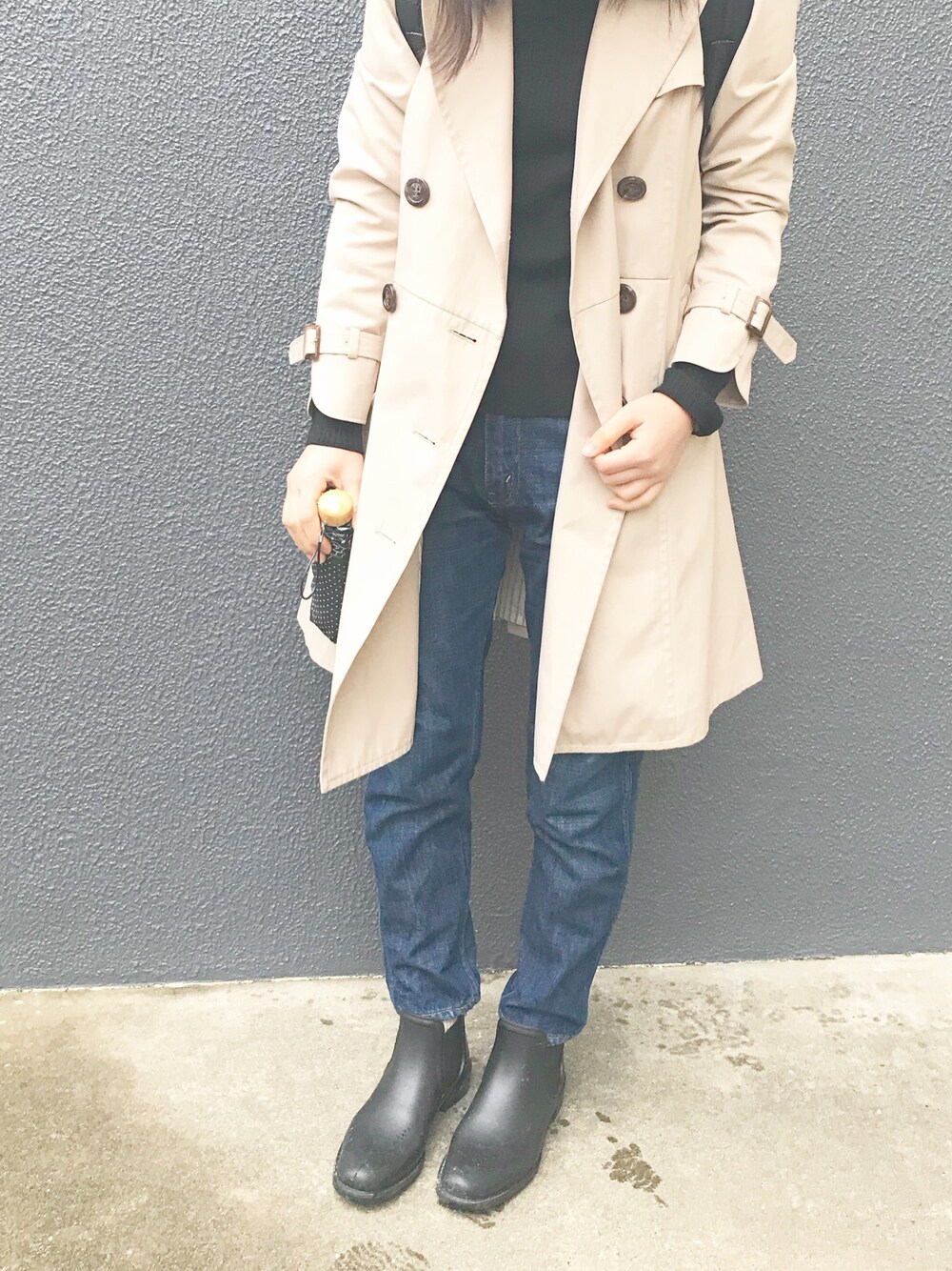 AKUのデニムパンツ「ハイウエストスリムパンツ」を使ったコーディネート