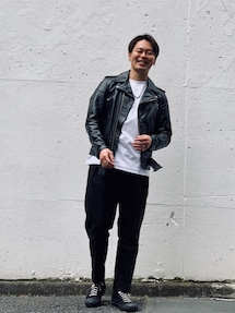 手嶋 祐生のライダースジャケット「HAIR SHEEP SOFT VEGE LEATHER / SEMI DOUBLE MOTOR RIDERS」を使ったコーディネート
