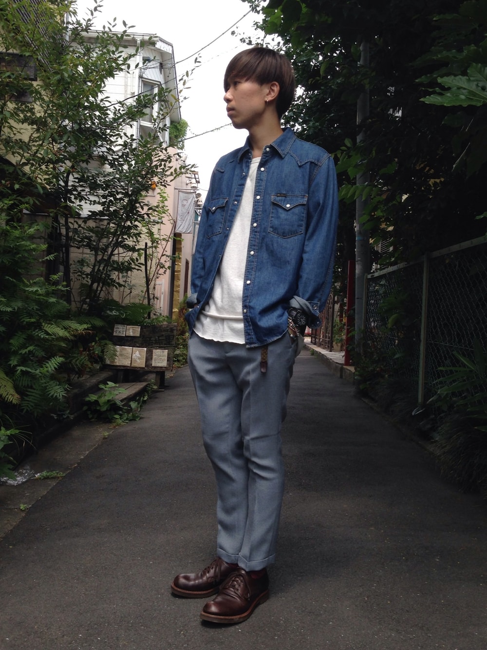 皆様ご無沙汰しております。 諸事情により更新が滞ってしまいましたが本日よりまた再開させて頂きます! 宜しければ見てって下さい。 NEW ARRIVAL ITEMを使用しての本日のスタイリング。 ライトオンスデニムにボールバイオを施す事で程良い“アタリ”や“味感”を表現したウェスタンシャツとポリサージスラックスを組み合わせ、アーバンライクに仕上げました。 PR 手嶋 *掲載されたアイテムは以下でもご購入できます。 店舗 : WALK IN CLOSET (T)03-5459-1885 公式サイト: http://walkincloset.jp/