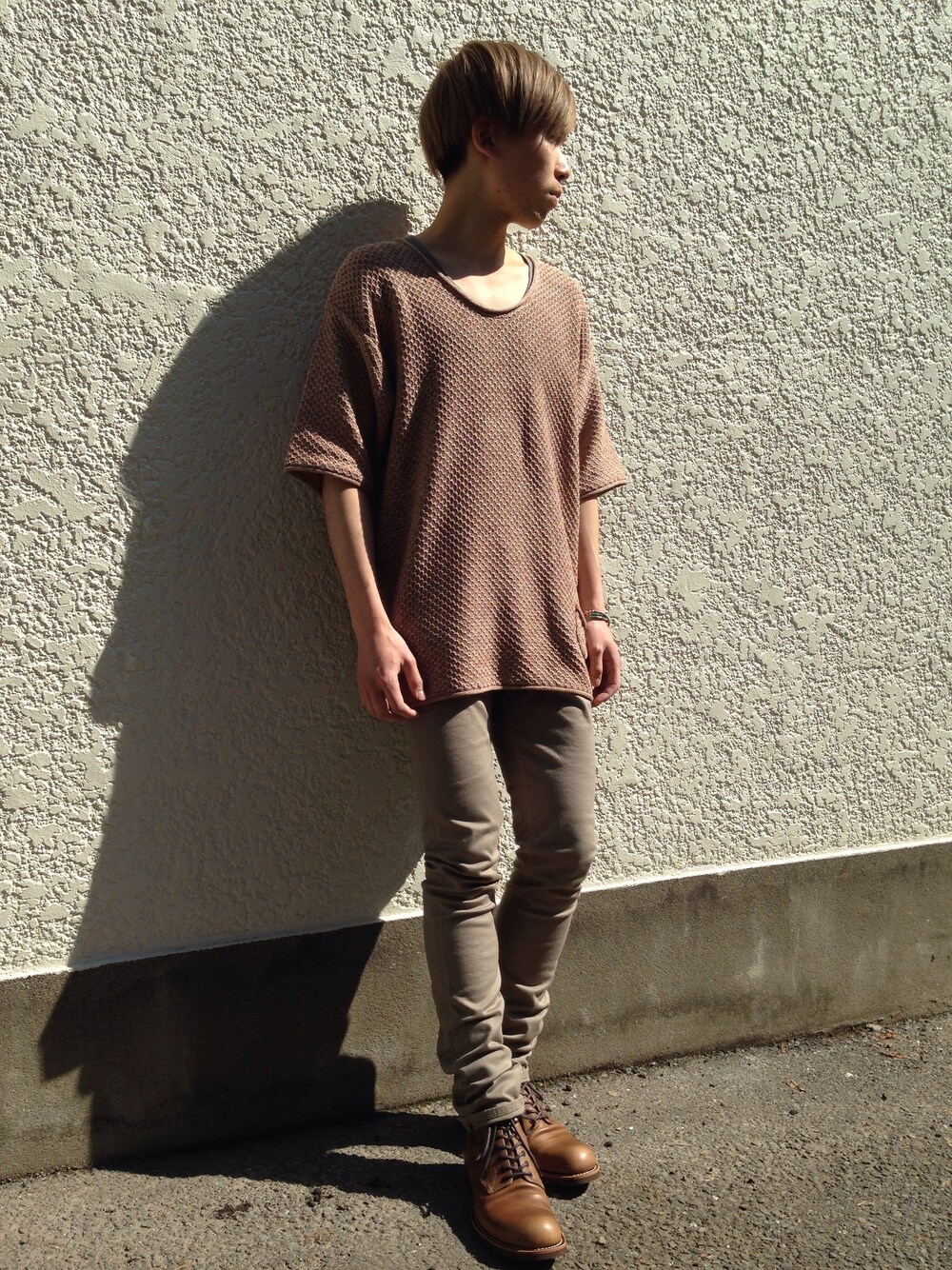 手嶋 祐生のニット/セーター「7G ミックスカラーニット / 半袖 オーバーニット」を使ったコーディネート