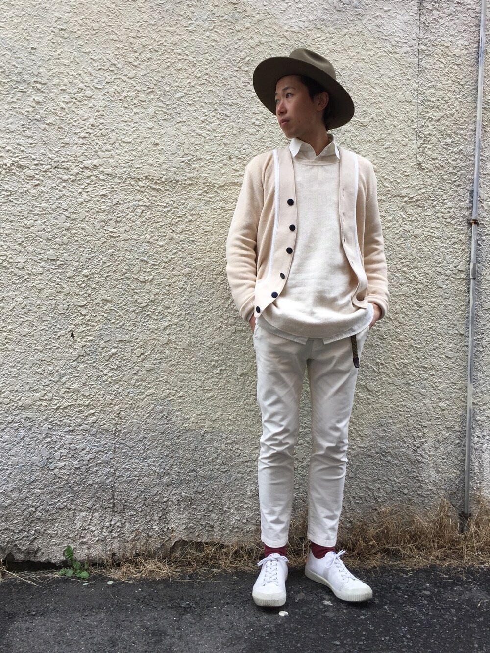手嶋 祐生のニット/セーター「CLASSIC NET WAFFLE COTTON / ROUND CUT LONGSLEEVE SUMMER SWEATER」を使ったコーディネート