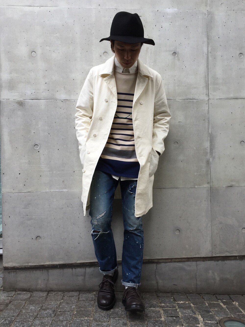 手嶋 祐生のジャケット/アウター「MR.OLIVE STRETCH SERGE OVERDYED COTTON /SEMI DOUBLE WORK COAT」を使ったコーディネート