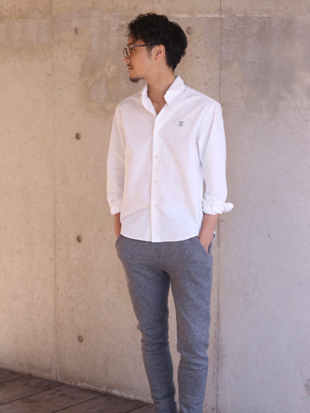 白シャツ×スウェットパンツ まだ早いですが、、春はこんな爽やか大人コーデで余裕ある風に見られたい。笑