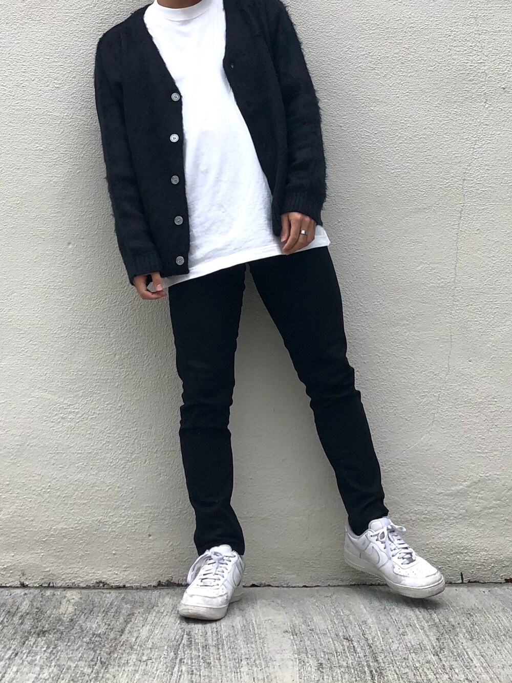 モノトーンコーデ 春はカーディガンの出番 エアフォースは本当に万能