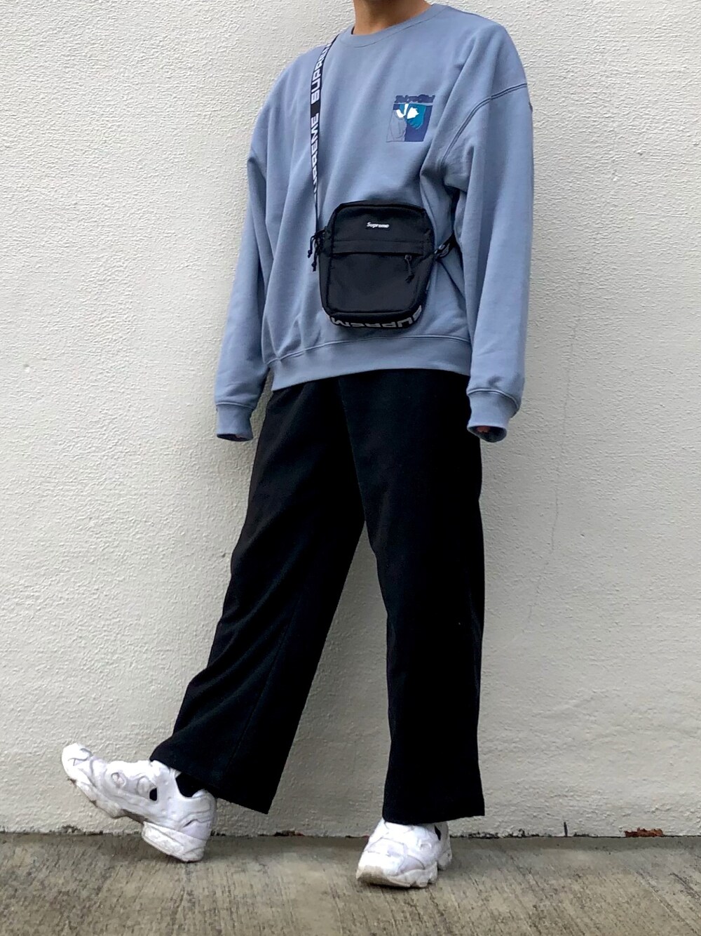 tokyogirlをメインで考えたコーデ supremeのショルダーバックがあることで全体がまとまる