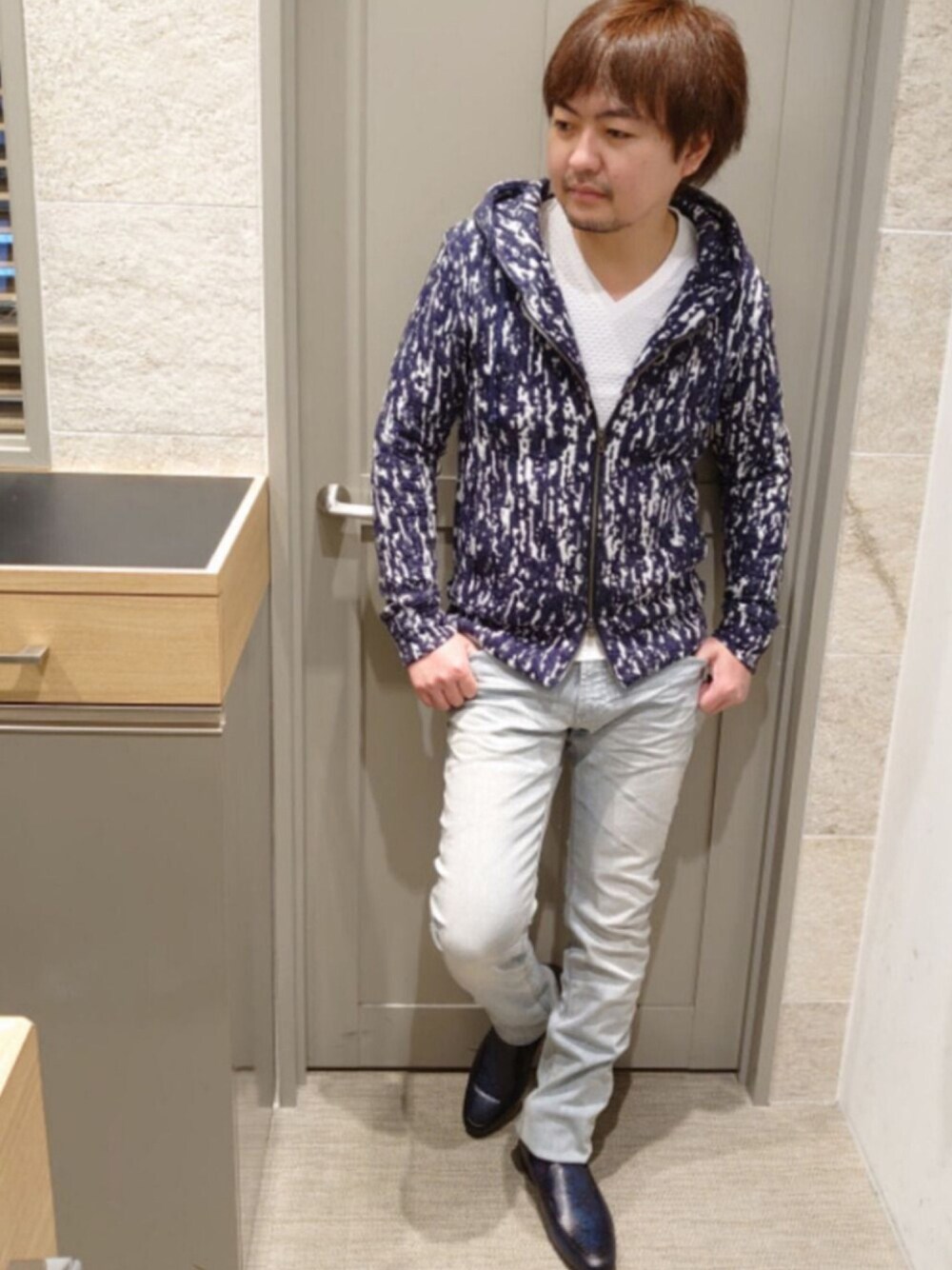こんにちは、ハイストリート北千住の松田です😉 いつもご覧頂きまして、ありがとうございます! 今週はこちらの春新作のカモ柄のパーカースタイル。 コットンとポリエステルを絶妙の色差で染色していて、オトナな顔立ちのデザインになってます。 パーカー 品番632-1177001 価格¥20,680 税込 デニム 品番632-1117001 価格¥26,180 税込 シューズ 品番632-1166001 価格¥30,800 税込