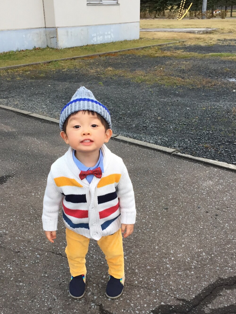 初めての生活発表会。 結局この服で☆ 0歳児クラスの彼はステージで歌遊びをしましたー♪ くまのプーさんの音楽に合わせて太鼓を叩くはずか… 終始きょっとーーーーーーーーん(汗) まぁ、泣かなかっただけ良しとしようか😅