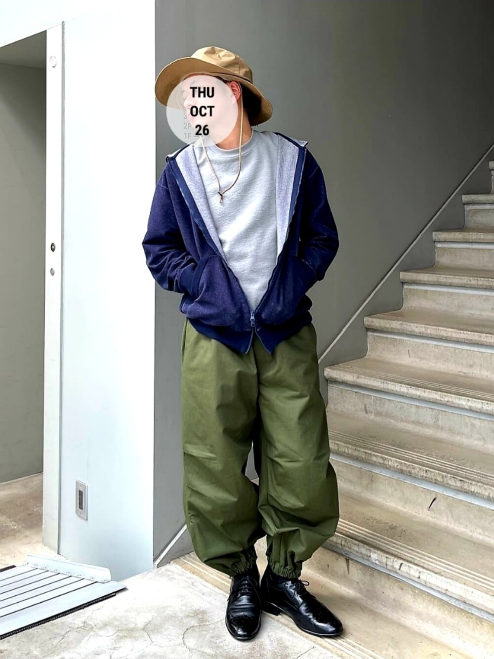 無骨なデニムパーカーに 無骨なオーバーシルエットのミリタリーパンツを合わせて やさしい雰囲気のパイル地シャツをインナーに添えて ミリタリーテイストなモードスタイルにしました。