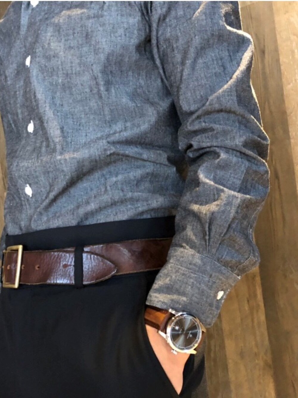 testzzzのアナログ腕時計「HAMILTON [ハミルトン] 腕時計 Spirit of Liberty (スプリットオブリバティ) オート 自動巻き 42MM レザーベルト グレー×ブラウン」を使ったコーディネート