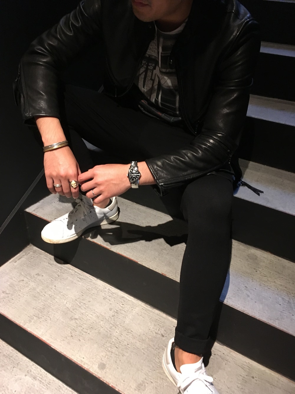 testzzzのアナログ腕時計「HAMILTON [ハミルトン] 腕時計 Ventura (ベンチュラ) クオーツ 50.30MM ステンレススチール ブレスレット ブラック×シルバー」を使ったコーディネート