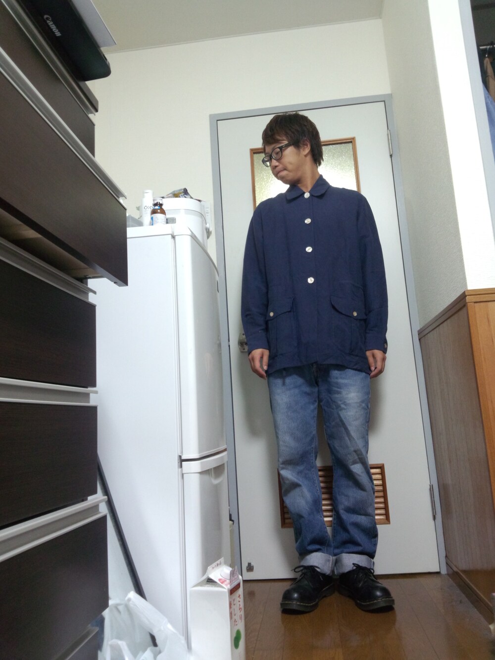 今日も青系。 最近青系しか着てない、 というか、買ってない。 いいシャツをメインにもってくる。 ぼくのすきなパターン。 下はシンプルに上で勝負。 このシャツお気に入り。 ボタンがね。ニヤリ。 画像のところを見てください。 やばいっしょ。裏が。 見えないところにも気を使う。 それがいいものでしょ。 シャツはレディース。 レディースのほうがいいサイズがある。 これはちびの宿命か。ハハ。 最後に変なポーズで締めっ! わたっ!