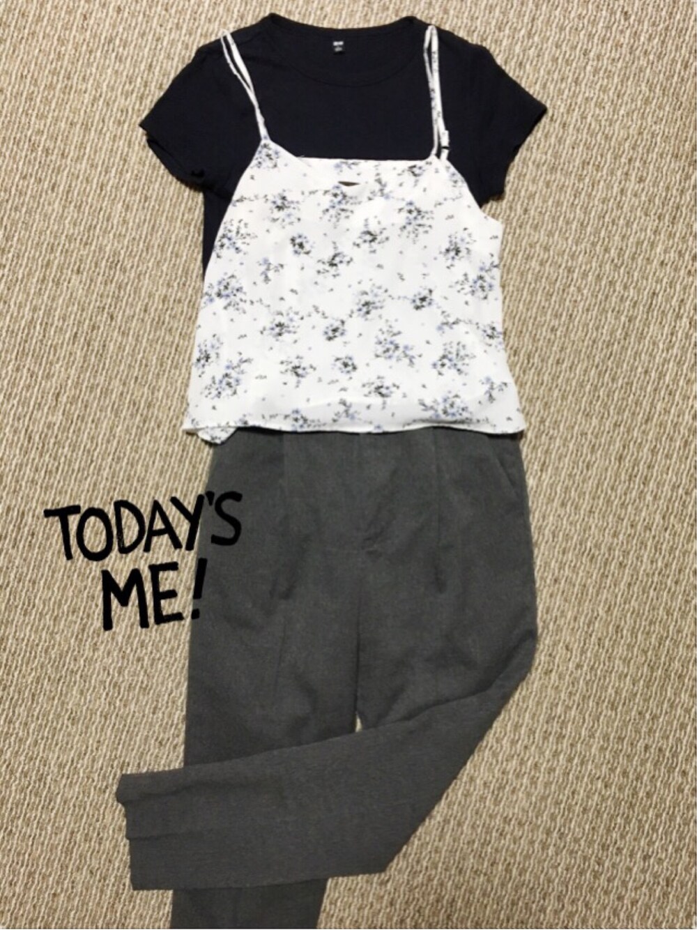 今日は冷んやりした日😹 なんだか急にネイビーとグレーを合わせた コーデをしたくなりました👀 この色だけだと重いかなーって事で 夏に買ったチャオパニックのキャミソールを 付け足し💃 UNIQLOのリブTは、何回着たんだろう❓ もっと買っておけばよかったな😱 結局、1着だけ😩着心地良すぎますね✨