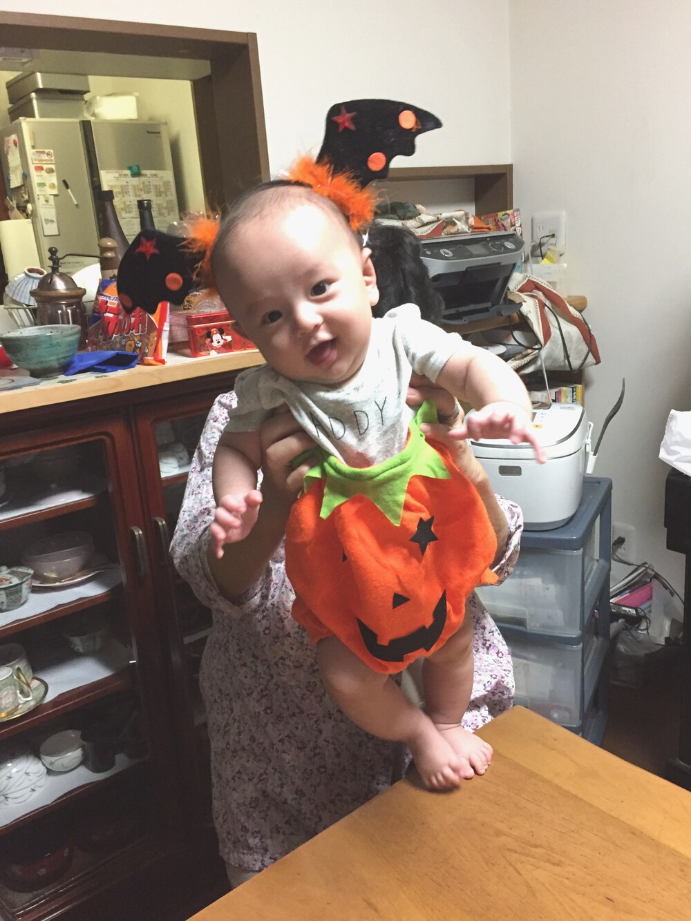 実家に行って衣装を着てみて喜んでいました。 パンプキンが似合います。 黒系は似合いません。