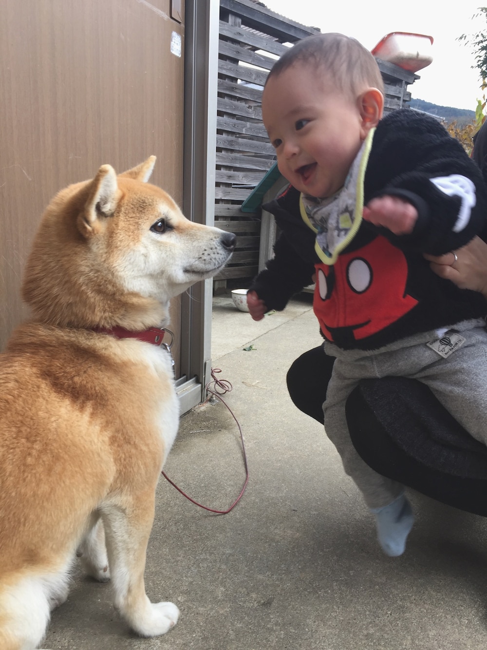 実家のワンちゃんを不思議そうにみていたので近づけると笑顔に。 良い顔してます。