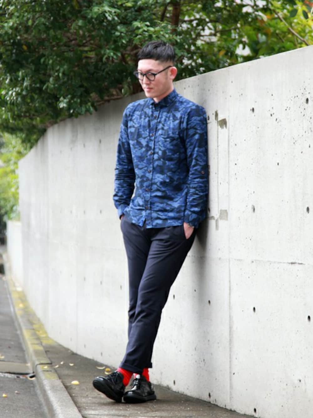 tetsuya satoのシャツ/ブラウス「【成宮寛貴さん着用smart12月号】インディゴプリントシャツ」を使ったコーディネート