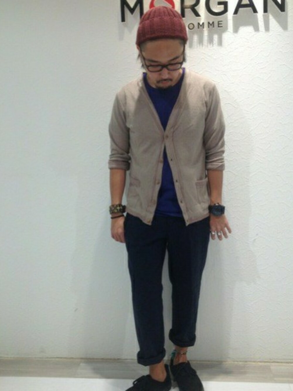 晩夏をイメージしてベージュのカーディガンで秋らしく。 しかし、まだ暑いこの季節に持ってこいなクロップドパンツでラフなスタイリングに!