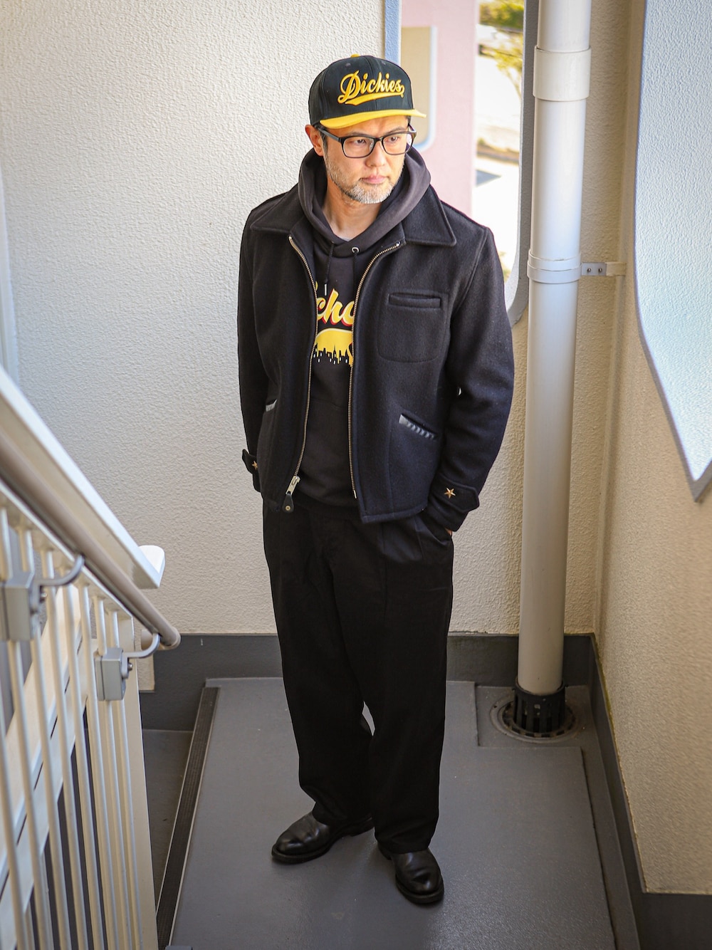 ブラックベースにイエローのアクセント。 ウールジャケットで程よく暖かいコーデです。 足元はRW1180ペコス 落ち着いた綺麗めの時は使いやすい一足。