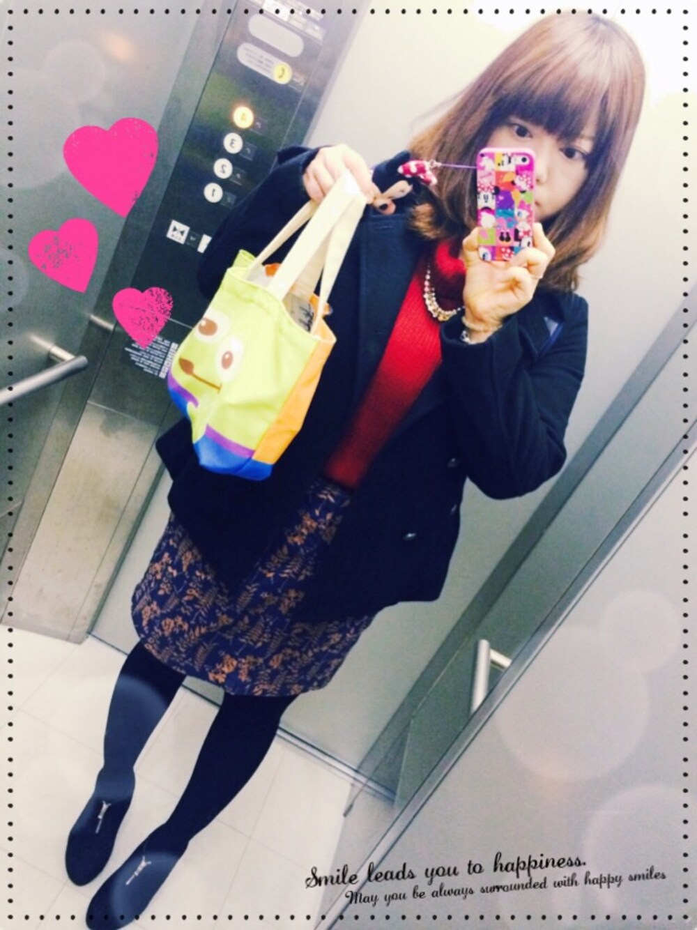 今日は暖かいのでお気に入りのボタニカル柄スカートで冬コーデですʔ•̫͡•ʕ