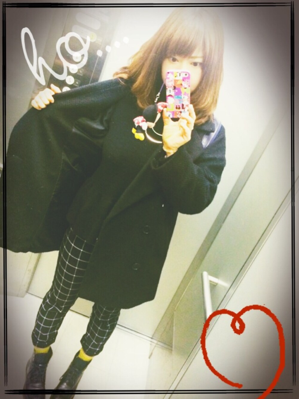 真っ黒コーデに黄色い靴下でアクセントを꒰•̫͡•ོ꒱
