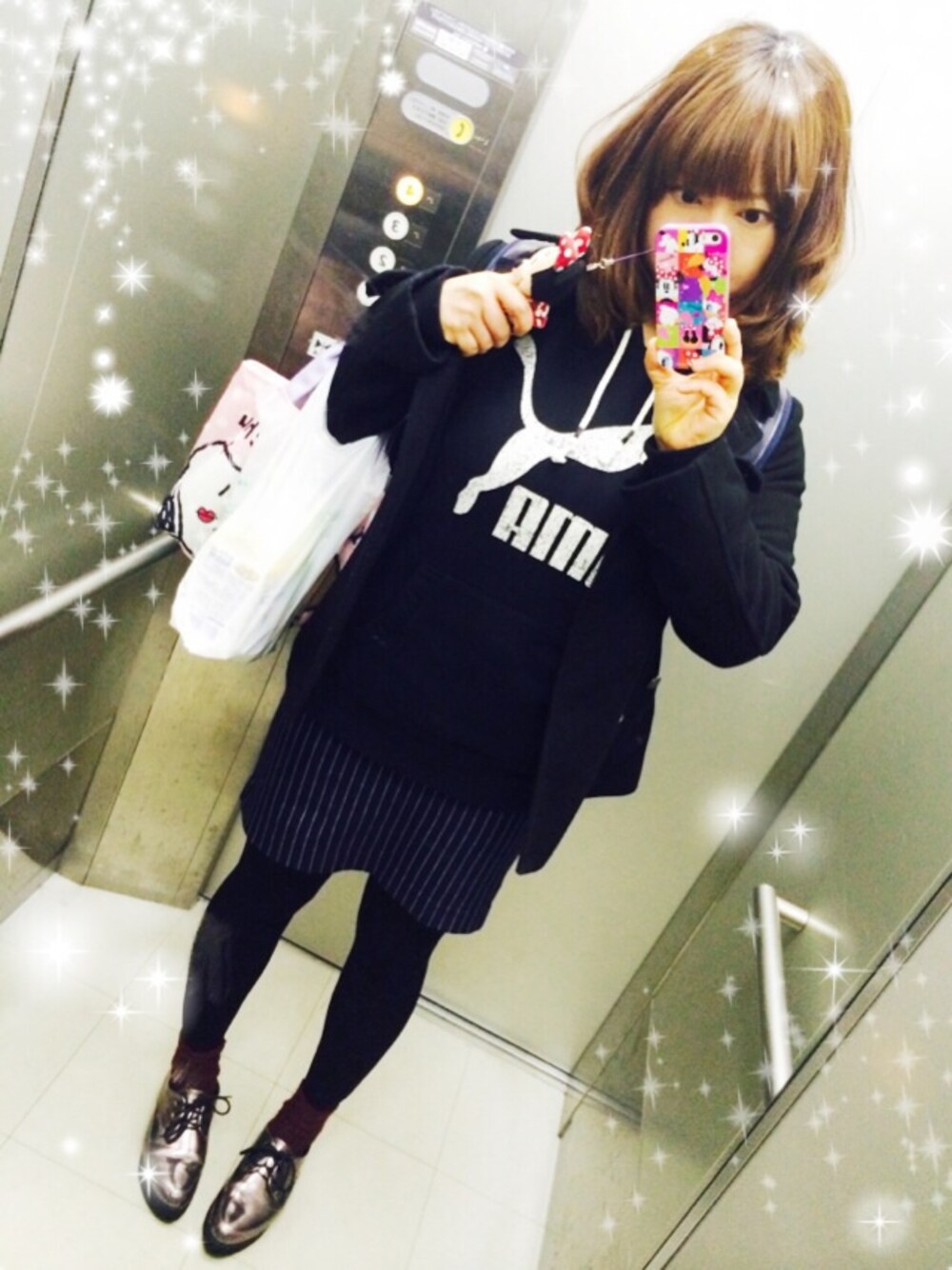 お気に入りのプーマのパーカーをカジュアルになり過ぎないようにタイトスカートでʔ•̫͡•ʕ♡