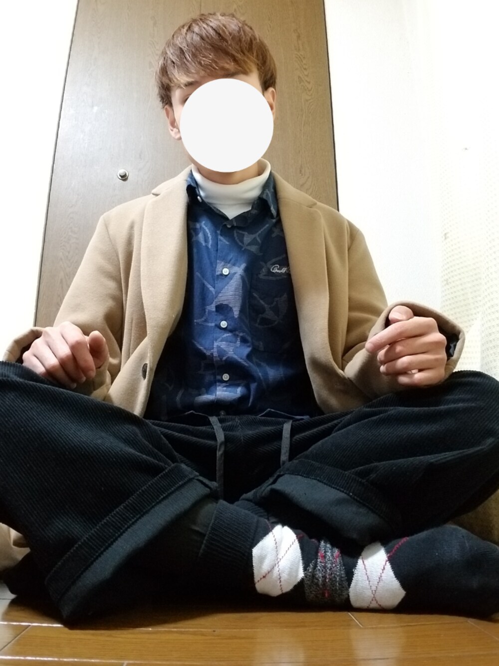 キャメルのロングコートとワイドパンツで上下WEGOコーデです! 今日は柄物を来てみましたー、めちゃくちゃお気に入りの服です✨ 最近タートルネック気がちです