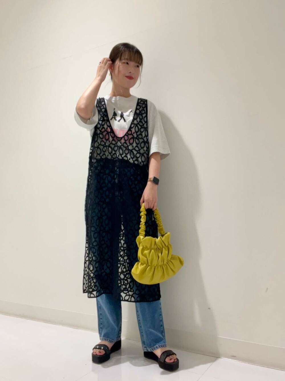 今回はまだまだ続く暑い日用に、ワンポイントオススメコーデを組みました♩ シンプルにTシャツにジーパンでも良いのですが、そこに上から透け感のあるレースワンピースを着ただけで一気にシャレ感が出ると思います◎ パンツはストレートで綺麗なシルエットです。下半身で悩みが多い骨格ウェーブさんにおすすめしたいパンツです! スタイルアップしたいので、シューズは厚底にしてみました! 差し色にイエローのバッグで一気に爽やかです🍃
