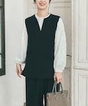 URBAN RESEARCHのレースブラウス、パンツ、DOORSのスリットネックベストを使ってセレモニースタイルを組みました✨ レースブラウスで抜け感✨✨