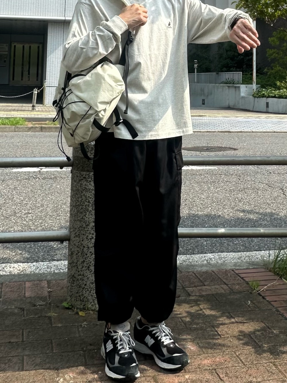 T_factory(MONO-MART)のTシャツ/カットソー「KANGOL/カンゴール 別注 ロゴ ワンポイント刺繍 オーバーサイズ長袖Tシャツ」を使ったコーディネート