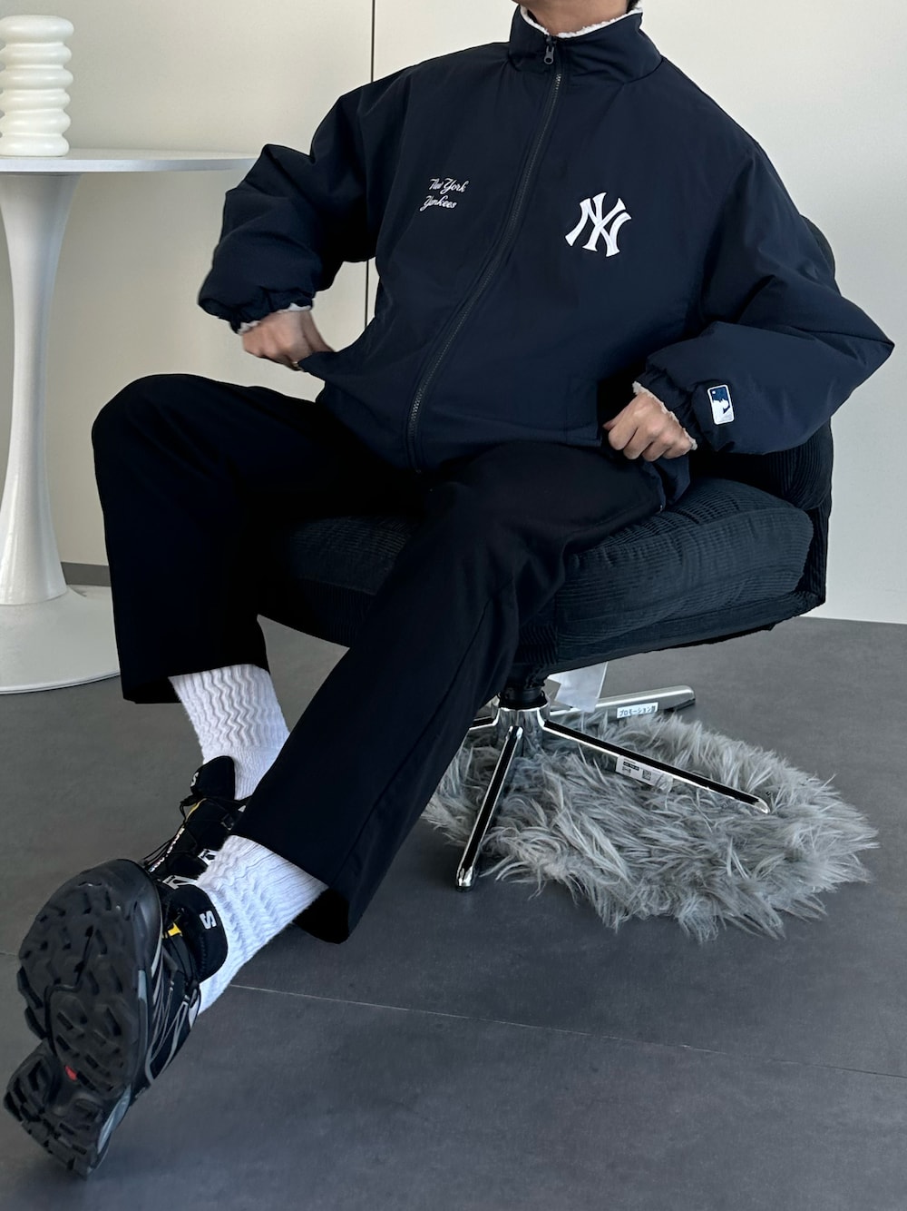 T_factory(MONO-MART)のブルゾン「MLB/メジャーリーグベースボール 別注 ワッペン刺繍 2WAYリバーシブル ドロスト スタンド ボアブルゾン」を使ったコーディネート