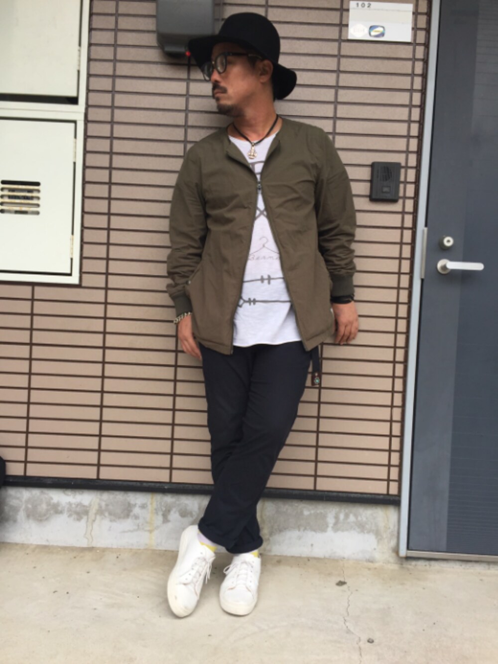 秋スタイルを、、、。 昨年も活躍したハットで、 大人カジュアルを笑 ノーカラーブルゾン、 これにハマってます笑 もう少し寒くなると インナーに使える薄さが いいですねー笑