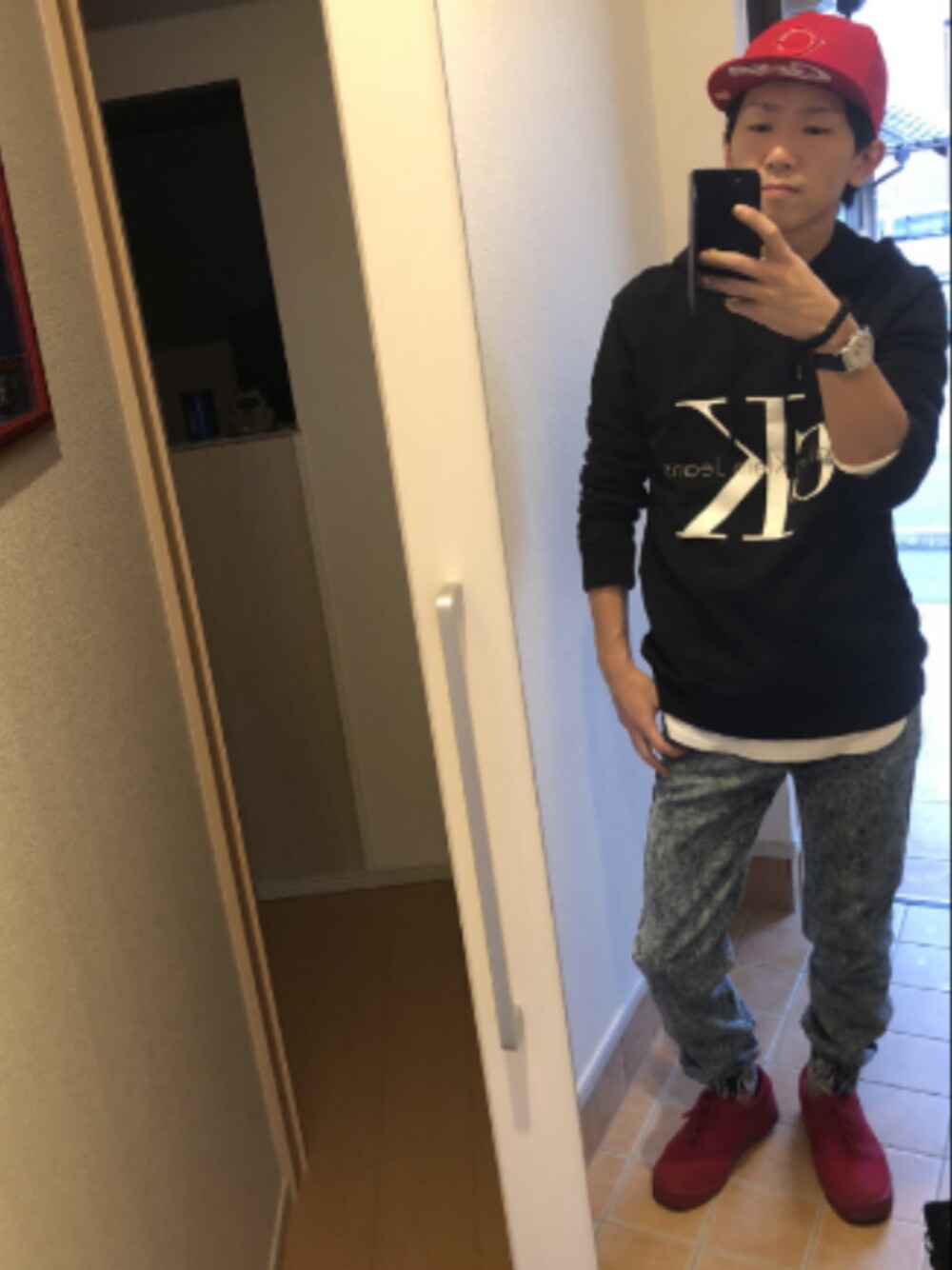 お客様スタイルです! トップスとシューズを赤で 全体のカラーバランスの 30%以下なので 効果的なアクセントに笑 ケミカルデニムジョガーパンツを ブラックとホワイトのトップスで、 上品に目立たせた感じで ベロだしスタイルは 当店の定番スタイルに笑 広島の街を歩く カープの優勝を気にする 大人の応援スタイルかと笑