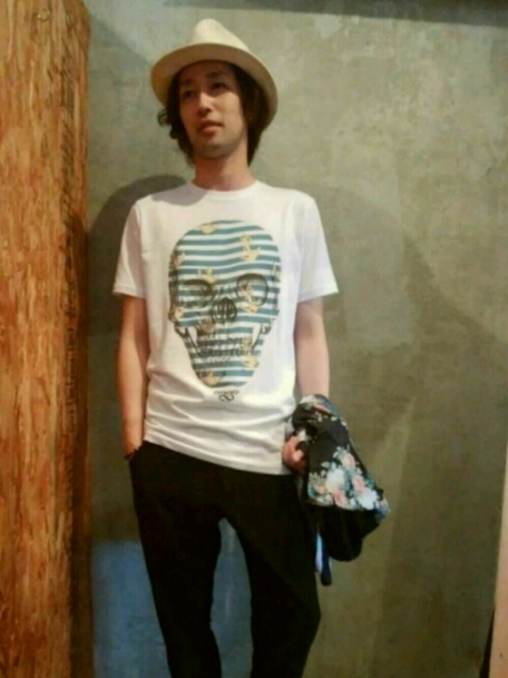 お客様スタイル! 柄シャツを 暑いから 脱いで 何気なスタイルですが、 プリントカットソーの インパクトを計算したスタイルで! 脱いでも 凄いんです!