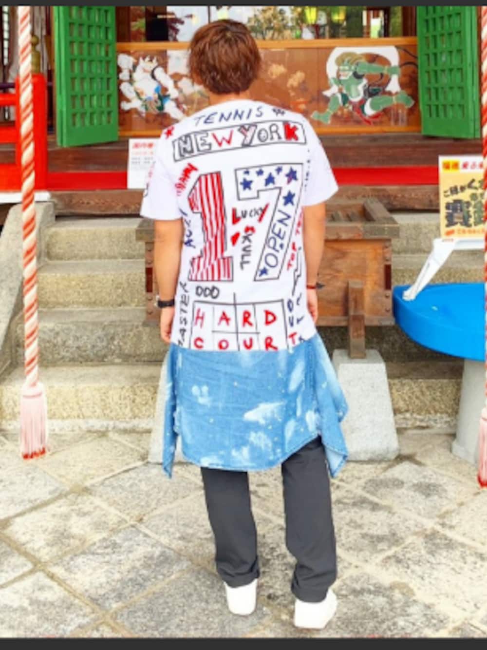 お客様スタイルです! 朝方寒くて 羽織っていた ペンキ加工デニムシャツを 暑くなったので 腰に巻いたスタイル! 脱ぐことを考えていたり、 後ろ姿まで 気にすること、 凄く大切ですね!